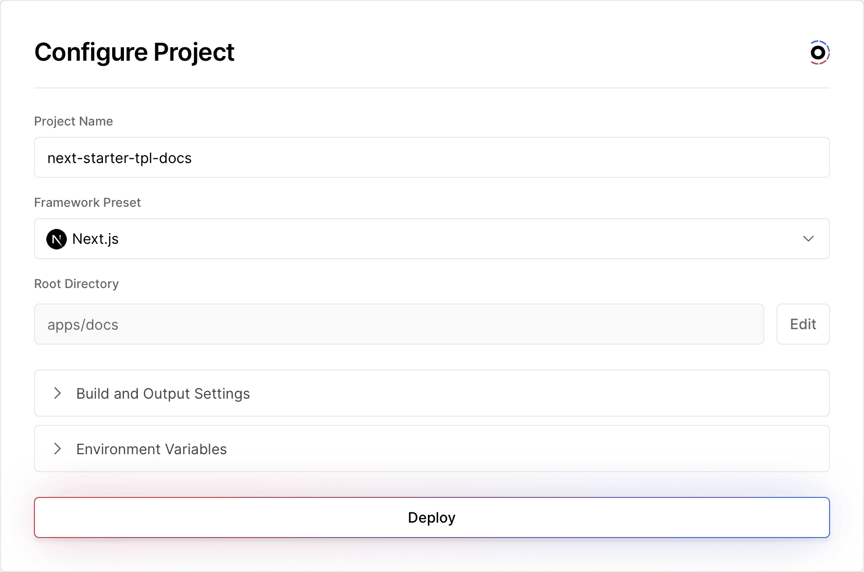 • Root Directory: apps/docs